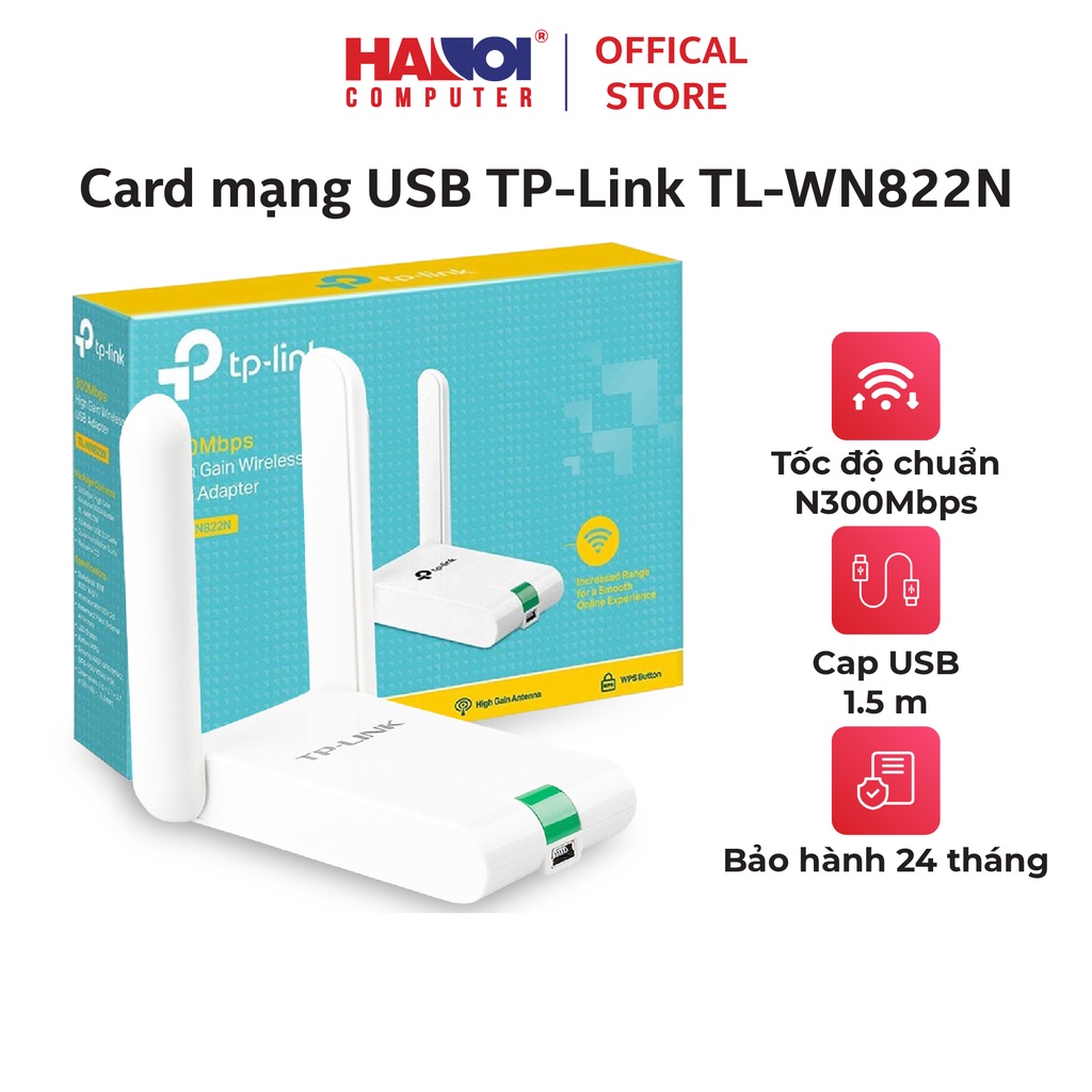 - Sản phẩm bao gồm Bộ chuyển đổi Wi-Fi TL-WN822N