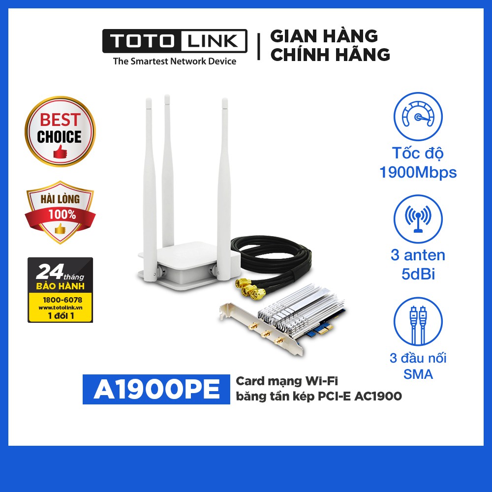 Máy tính & Laptop > Thiết Bị Mạng > Bộ Thu Wifi || Card mạng Wi-Fi băng tần kép PCI-E AC1900 TOTOLINK A1900PE Dễ dàng cài đặt cho máy tính bàn Hàng chính hãngCòn hàng