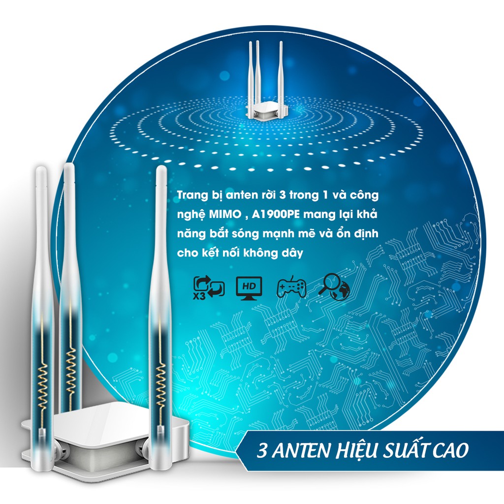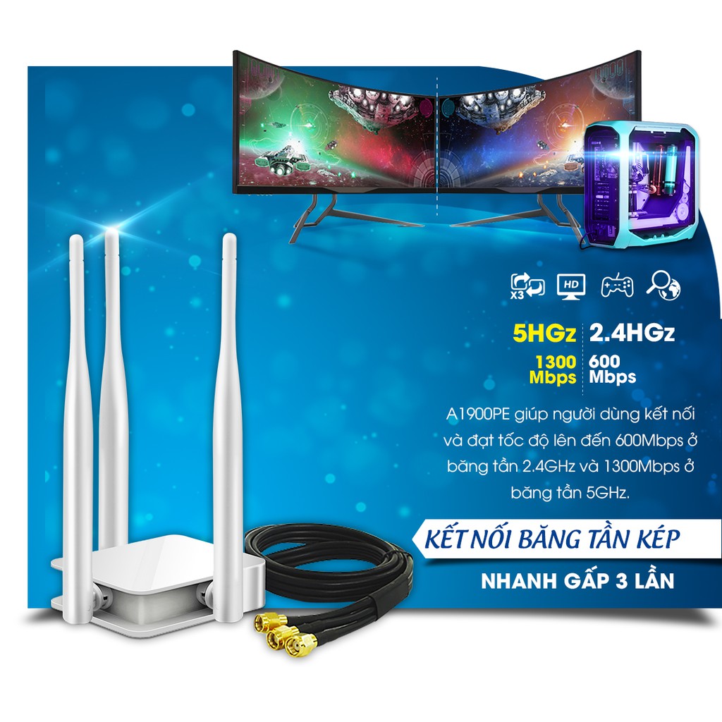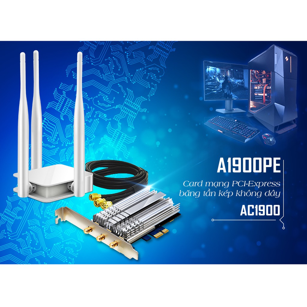 Giới thiệu sản phẩm Card mạng Wi-Fi Băng tần kép PCI-E AC1900 A1900PE* Đặc điểm của sản phẩm Card mạng Wi-Fi Băng tần kép PCI-E AC1900 A1900PE
