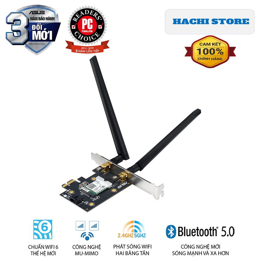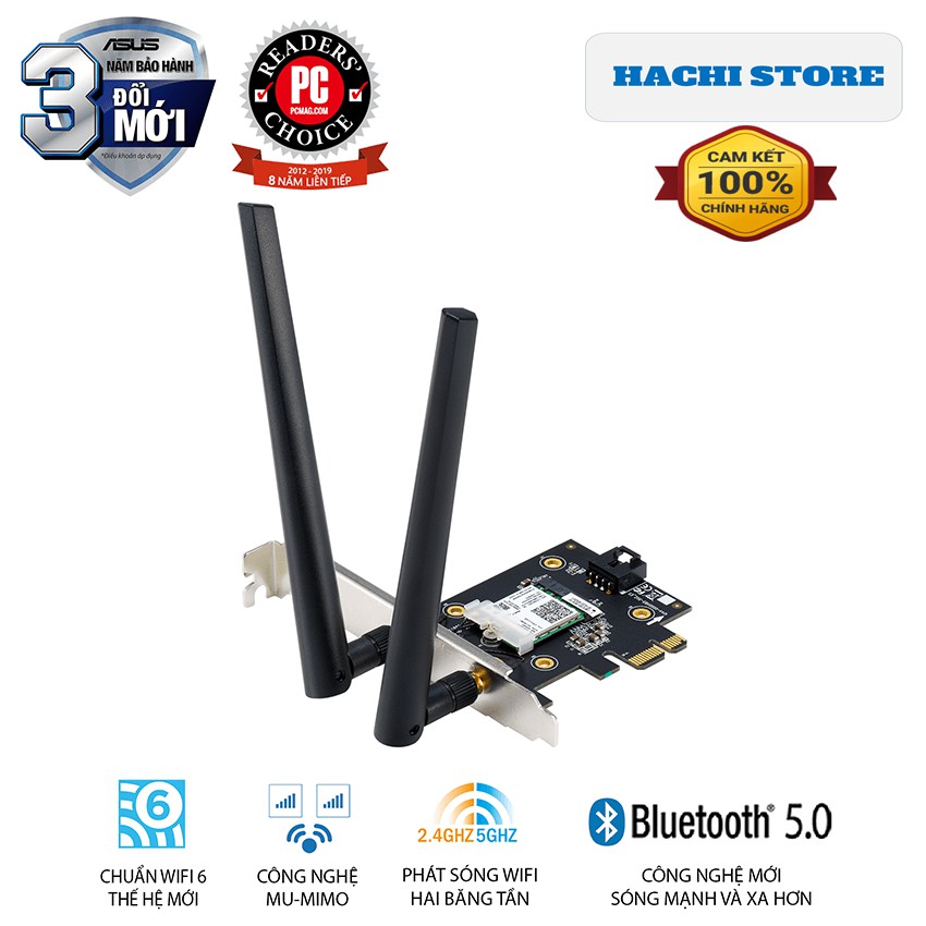 Máy tính & Laptop > Thiết Bị Mạng > Bộ Thu Wifi || Card Mạng Wifi 6 chuẩn PCI-e 2 băng tần tốc độ 3000 Mbps Asus -PCE-AX3000 - Hàng phân phối Chính HãngCòn hàng