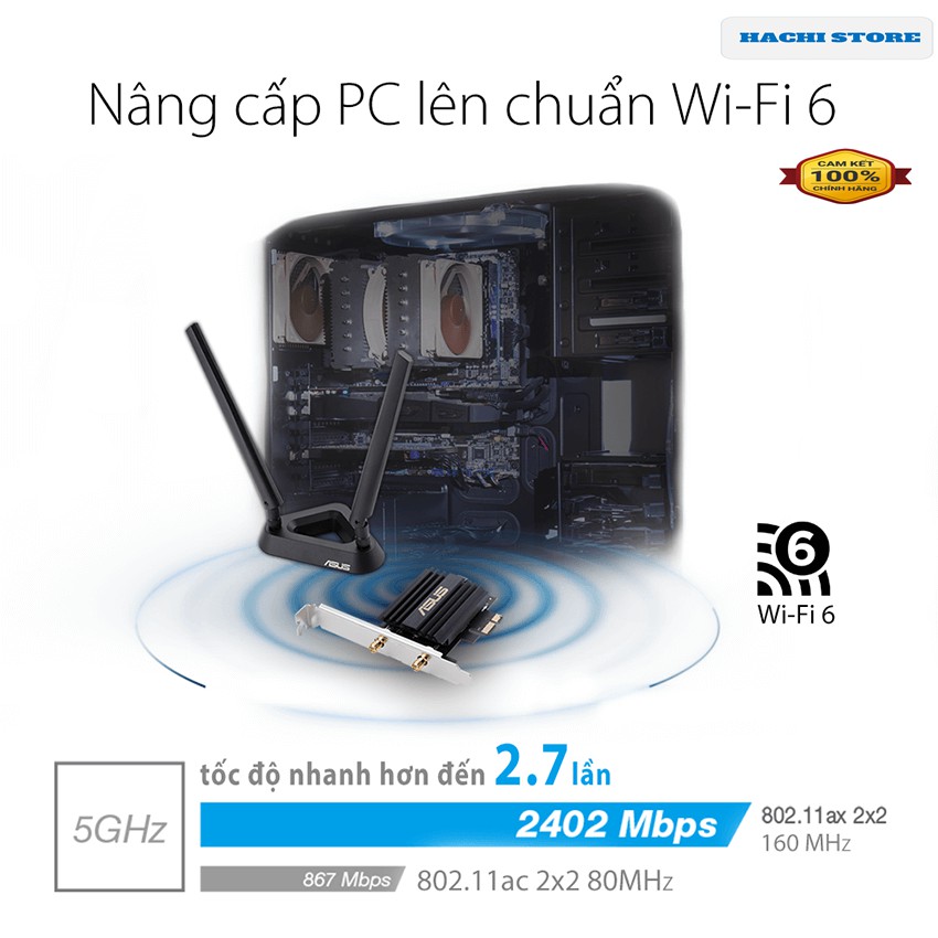 Máy tính & Laptop > Thiết Bị Mạng > Bộ Thu Wifi || Card Mạng Wifi 6 chuẩn PCI-e 2 băng tần tốc độ 3000 Mbps Asus -PCE-AX58BT - Hàng phân phối Chính HãngCòn hàng