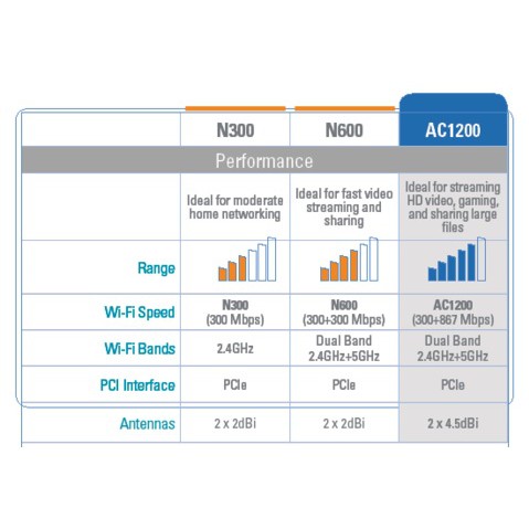 PCI Express cung cấp kết nối băng thông rộng với máy tính của bạn, trong khi ăng-ten công suất cao tăng cường độ tín hiệu để tăng phạm vi và hiệu năng không dây