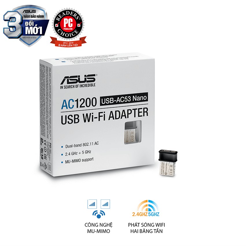 Máy tính & Laptop > Thiết Bị Mạng > Bộ Phát Wifi || Card mạng wifi USB Asus USB-AC53 Nano chuẩn AC - Tốc độ 1200MbpsCòn hàng
