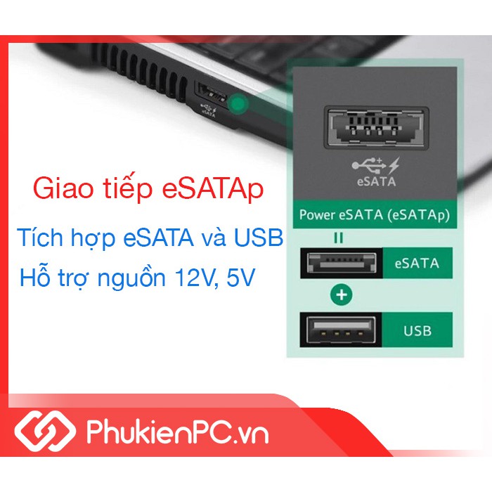 eSATAp giao tiếp bao gồm USB và eSATA. Bạn sử dụng cho các thiết bị giao tiếp USB và eSATA đều được: chuột, bàn phím, usb, hdd box, sạc thiết bị điện thoại di động, máy tính bảng...
