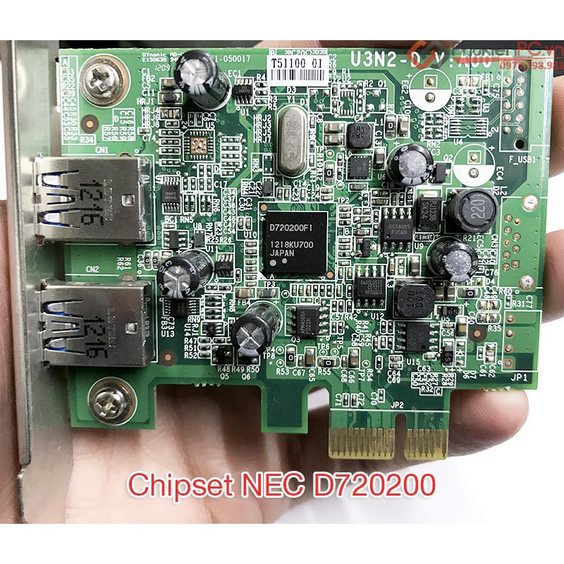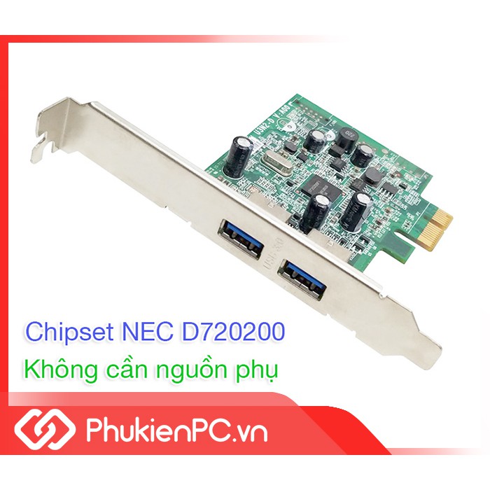 Card chuyển đổi PCI-E 1X sang 2 cổng USB 3.0 dùng chipset hãng NEC D720200 chất lượng cao. Mở rộng 2 cổng USB 3.0 cho máy tính bàn PC, máy tính đồng bộ DELL, HP, Lenovo…Card PCIe giúp bạn kết nối máy tính với các thiết bị ngoại vi, lưu trữ: HDD Box, Docking, ổ cứng cắm ngoài, máy in, chuột, bàn phím…Nhận cùng một lúc 2 thiết bị cùng một lúc (ví vụ bạn cắm 2 ổ cứng di động, máy in…)