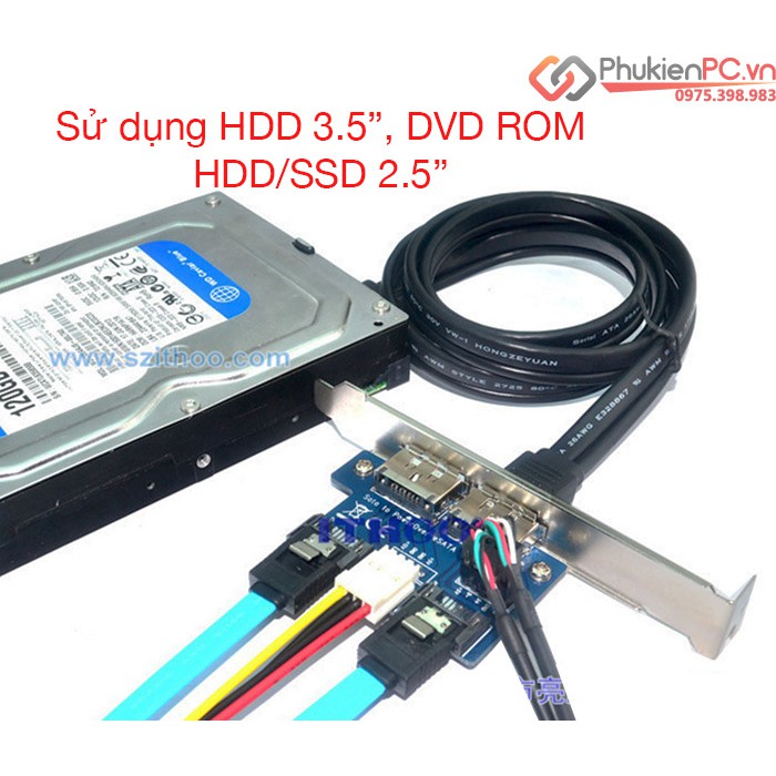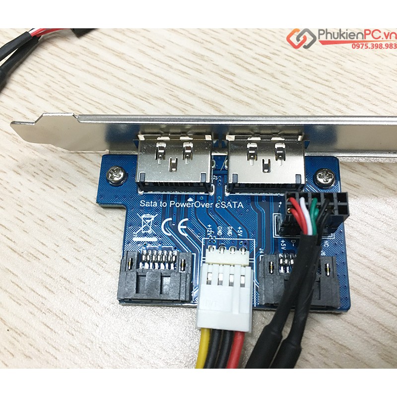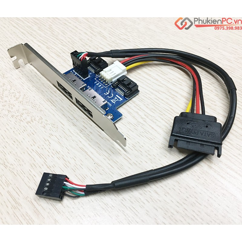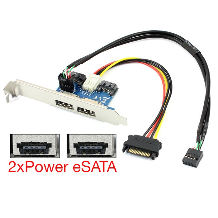 Card-adapter chuyển đổi 2 x SATA, 9Pin USB header ra 2 cổng Power eSATAp. Sử dụng kết nối máy tính ra ổ cứng HDD 3.5″, HDD 2.5″, SSD 2.5″, DVD/CD ROM 5.25″, HDD, Box, Docking giao tiếp eSATA.Để sử dụng kết nối ổ cứng HDD/SSD/DVD Rom bạn cần cáp eSATAp to SATA 22Pin để kết nối.