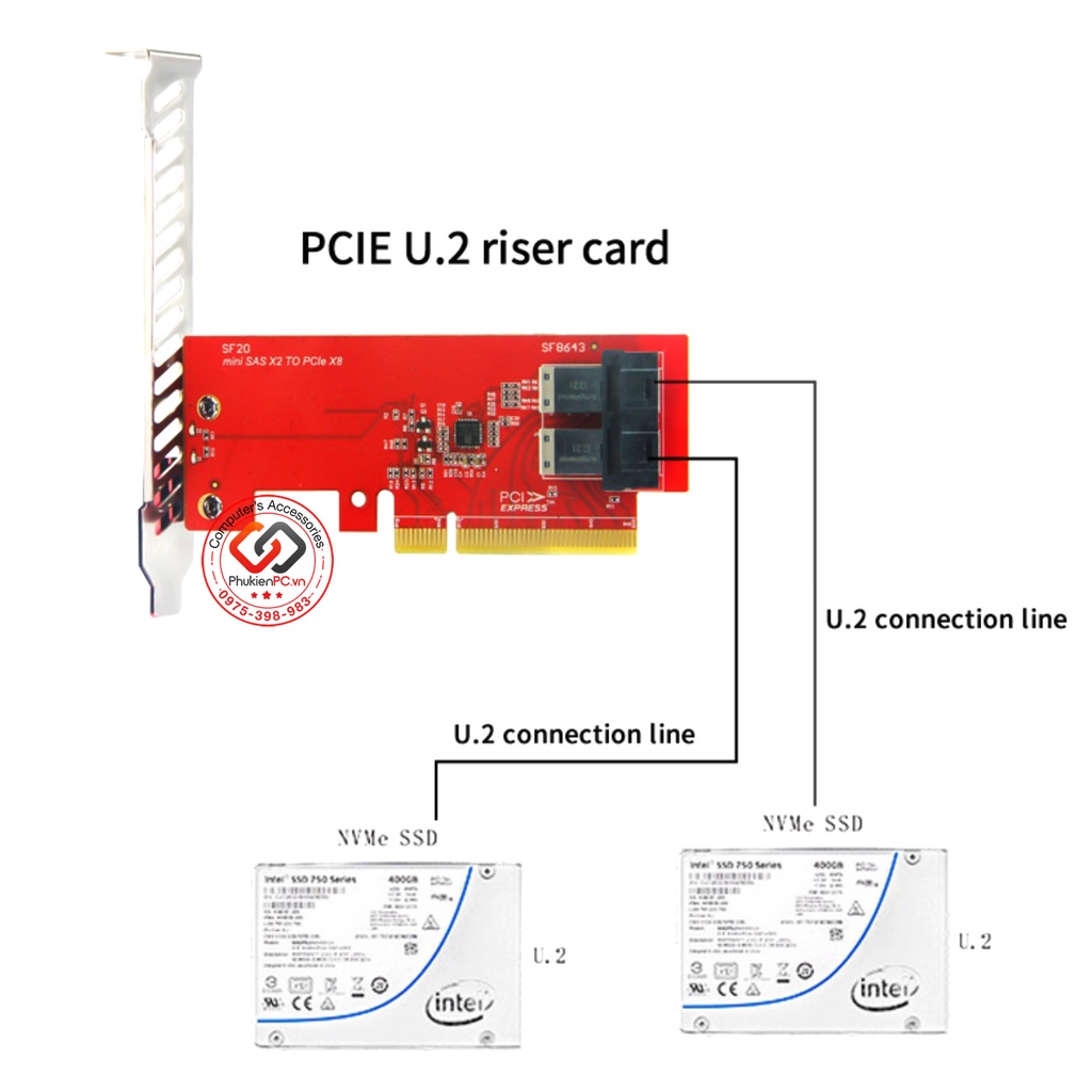 Giới thiệu Card PCI-e 8X sang 2Port U.2 SFF-8643 NVMe 2.5 server datacenter