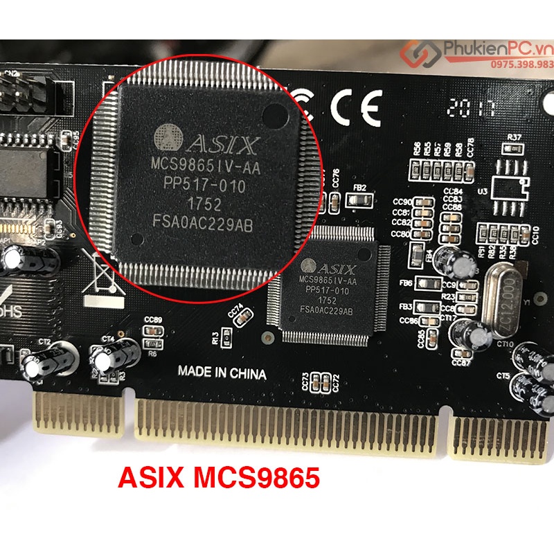 Sử dụng chipset hãng ASIX MCS9865, tương thích tốt với nhiều thiết bị serial, parallel trên thị trường. Chất lượng cao hơn một số card pci to lpt giá rẻ sử dụng chipset TXIC/TX382A
