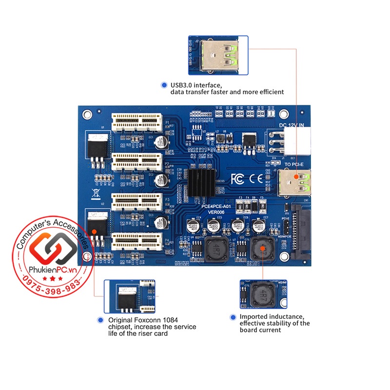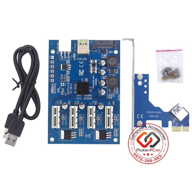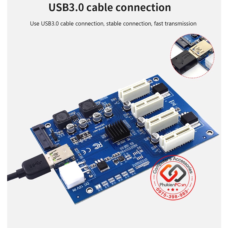 Máy tính & Laptop > Linh Kiện Máy Tính > Khác || Card Riser mở rộng PCIe 1x ra 4 Port PCIe 1X lắp cùng lúc 4 cardCòn hàng