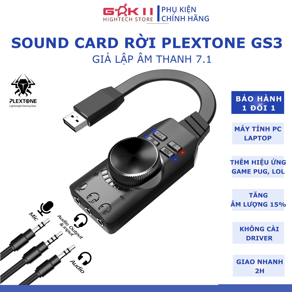 Card Rời Âm Thanh USB Plextone GS3- Sound Card Âm Thanh 7.1 Cho Máy Tính PC - Chuyên Game - Phim