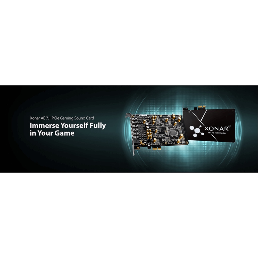 Xonar AE là một card âm thanh chơi game PCIe được xây dựng với các thành phần chất lượng cao để làm hài lòng những game thủ cần âm thanh đặc biệt để có trải nghiệm chơi game và đa phương tiện tốt nhất. Xonar AE cung cấp đầu ra âm thanh Hi-Res 7.1 kênh, 192kHz / 24 bit với tỷ lệ nhiễu tín hiệu cao 110dB (SNR) và đi kèm với bộ khuếch đại tai nghe 150ohm tích hợp cung cấp âm thanh phong phú, chi tiết và âm trầm xác định . Một tấm lưng EMI độc quyền che chắn tiếng ồn tĩnh cho âm thanh cực kỳ rõ ràng.