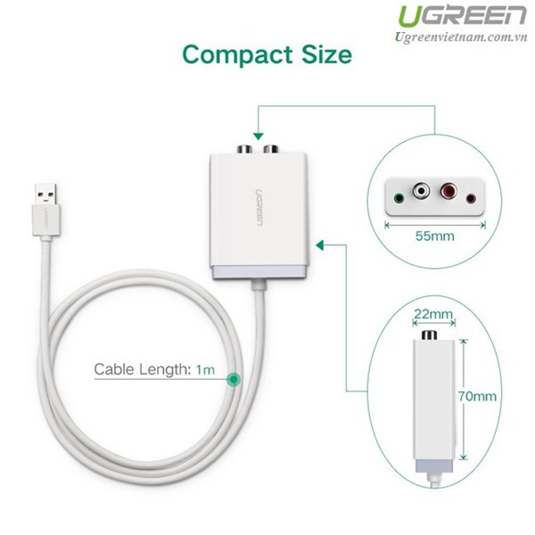 - Cáp chuyển USB to RCA hỗ trợ Mic + tai nghe chính hãng Ugreen 30521 giúp các bạn có thể chuyển đổi âm thanh từ cổng USB trên máy tính bàn , Laptop ... ra thiết bị âm thanh của các bạn như Amly , tai nghe ... với âm thanh trung thực nhất.