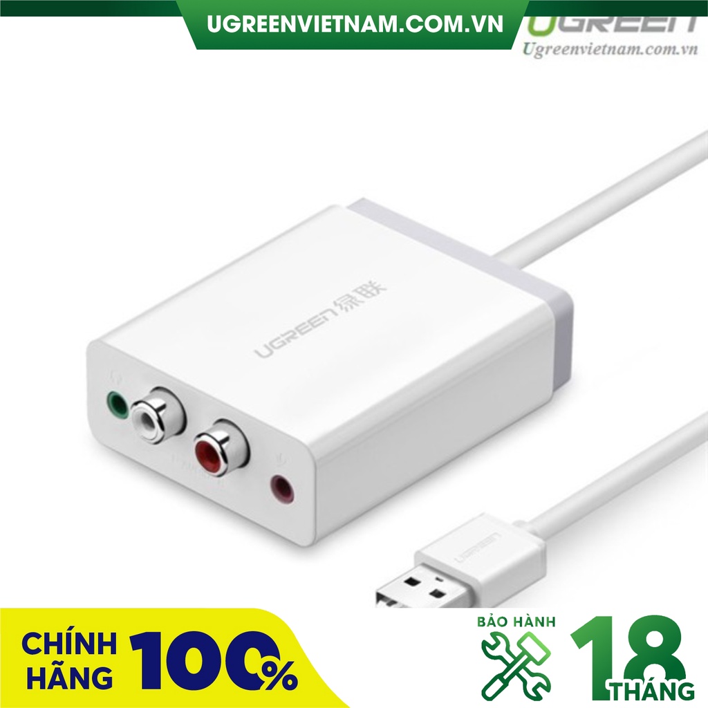 Card sound USB to RCA hỗ trợ Mic + tai nghe chính hãng Ugreen 30521 cao cấp