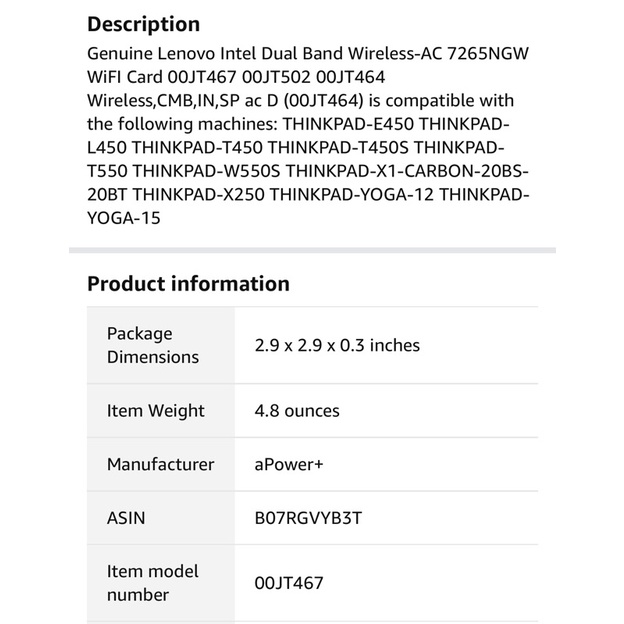 Giới thiệu Card thu sóng wifi laptop lenovo Thinkpad T450s hiệu Intel AC 7265 802.11ac, Wi-Fi + Bluetooth 4.0 - (7265NGW)