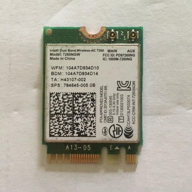 Card wifi AC 7260 dành cho laptop có khe cắm wifi M2 dùng để thay thế hoặc nâng cấp wifi lên đời cao hơn cho laptopCard wifi AC 7260 cũng lắp được cho mainboad Máy bàn PC có khe cắm m2