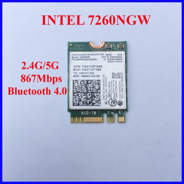 - Card Wifi AC 7260: Tốc độ tối đa 867Mbps, bluetooth 4.0