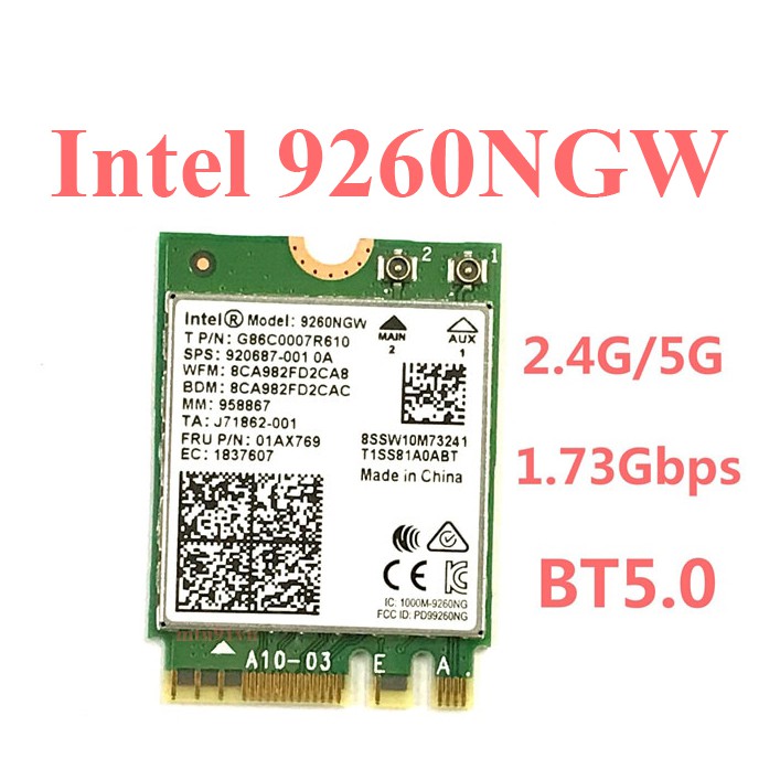 - Intel 9260NGW: Tốc độ tối đa 1730Mpbs. Bluetooth 5.0 (Hàng mới 99,9%)