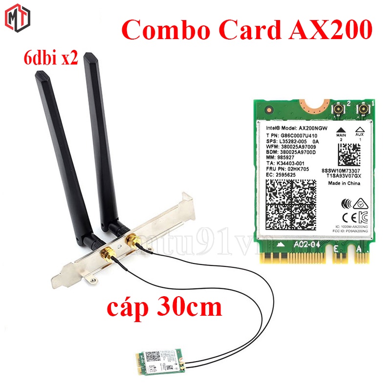 - Intel AX200NGW :Tốc độ tối đa 2400Mpbs. Bluetooth 5.0 (Hàng mới 99,9%)