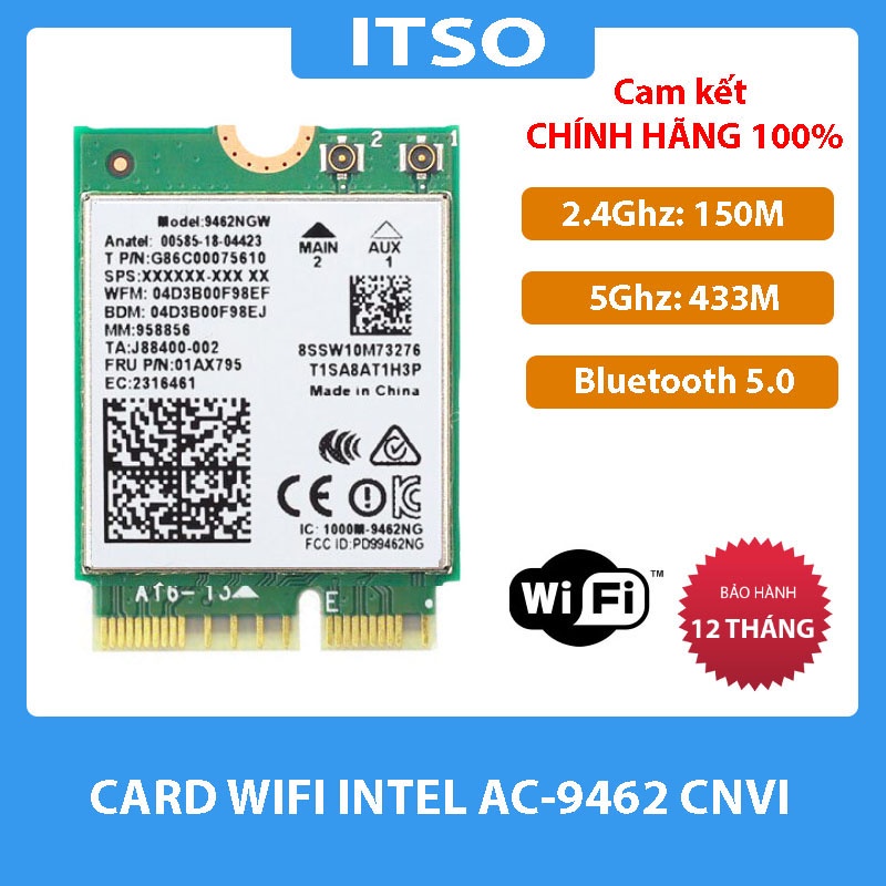 SẢN PHẨM THUỘC NHÓM CARD CNVIO, CẦN ĐỌC THÊM PHẦN LƯU Ý BÊN DƯỚI TRƯỚC KHI MUACard WIFI Intel AC-9462 khe M2 NGFF cho laptop
