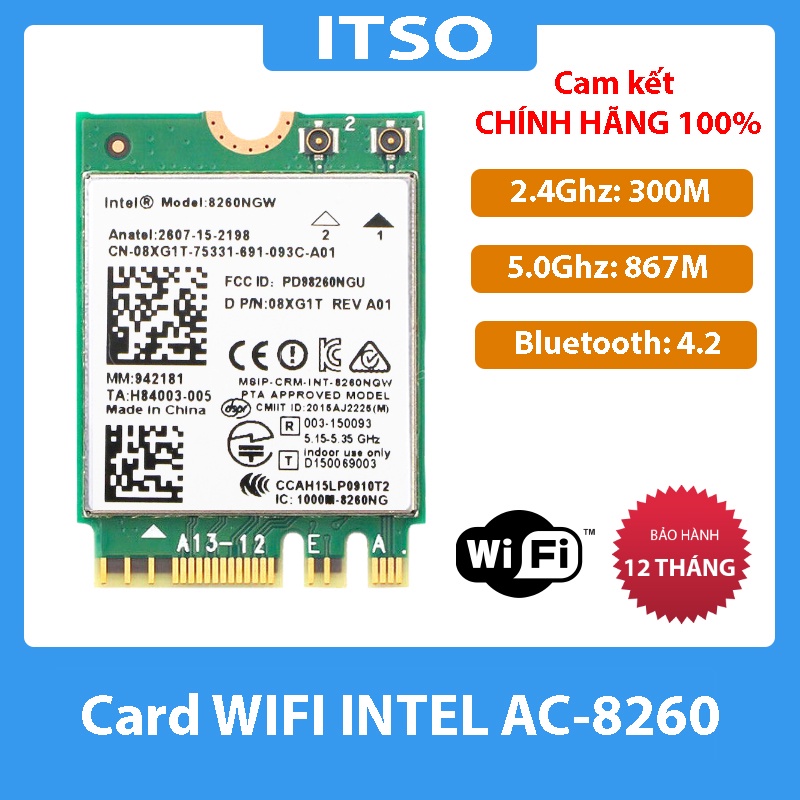 - Bảo hành 12 tháng cho tất cả các sản phẩm M.2 WIFI Intel