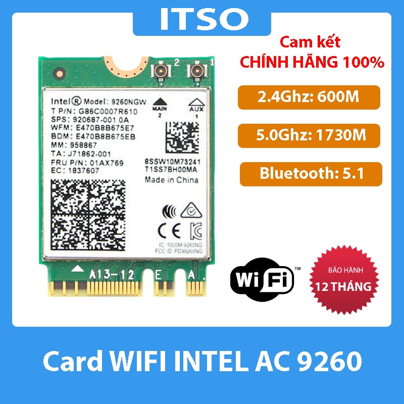 - Intel AC 9260: Tốc độ tối đa 1730M. Bluetooth 5.1 có MU MIMO