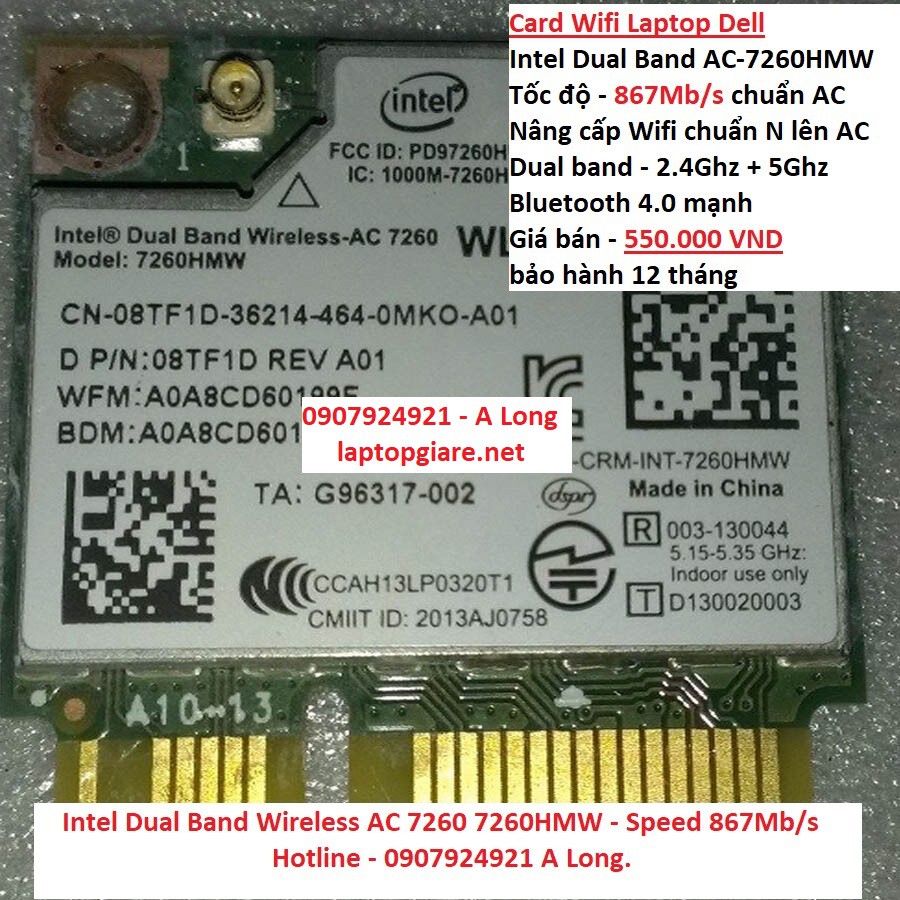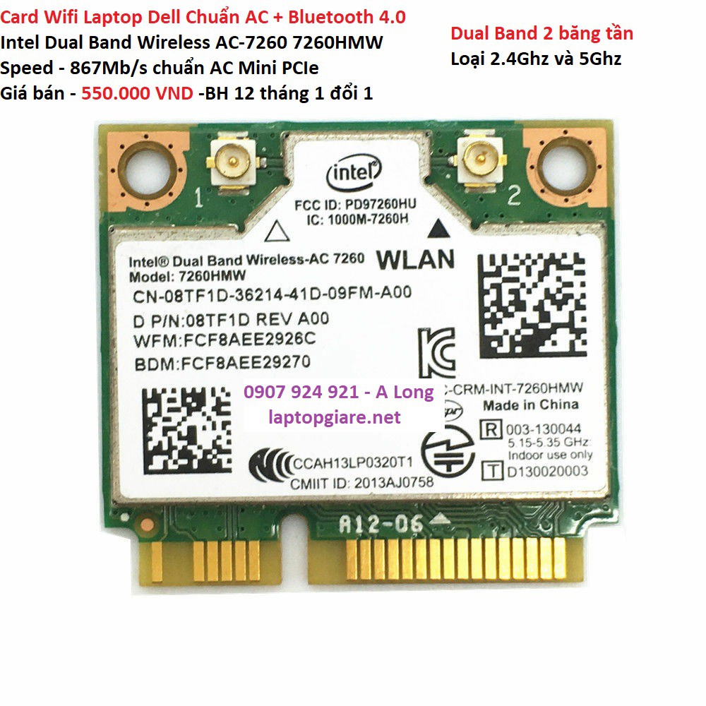 Shop chuyên bán Card Wifi Intel Dual Band wireless AC-7260 cho Laptop Dell Precision M4600 M4700 M4800. Chuẩn kết nối Mini PCIe.