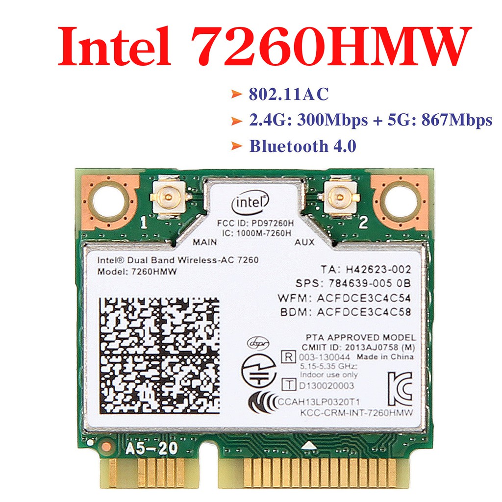 Card WiFi Laptop Intel 7260 chuẩn AC có Blueooth 5.0 (Model: Intel 7260HMW)Hàng zin tháo từ Laptop ra, mới trên 95% tùy thời điểm