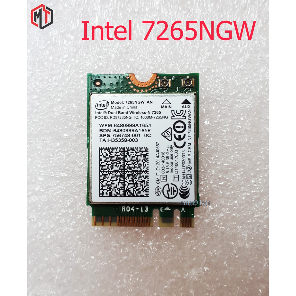 Card WiFi Laptop Intel 7265NGW AN Wifi chuẩn N có Blueooth 4.2 (Model: Intel 7265NGW)Hàng zin tháo từ laptop ra, mới trên 95%