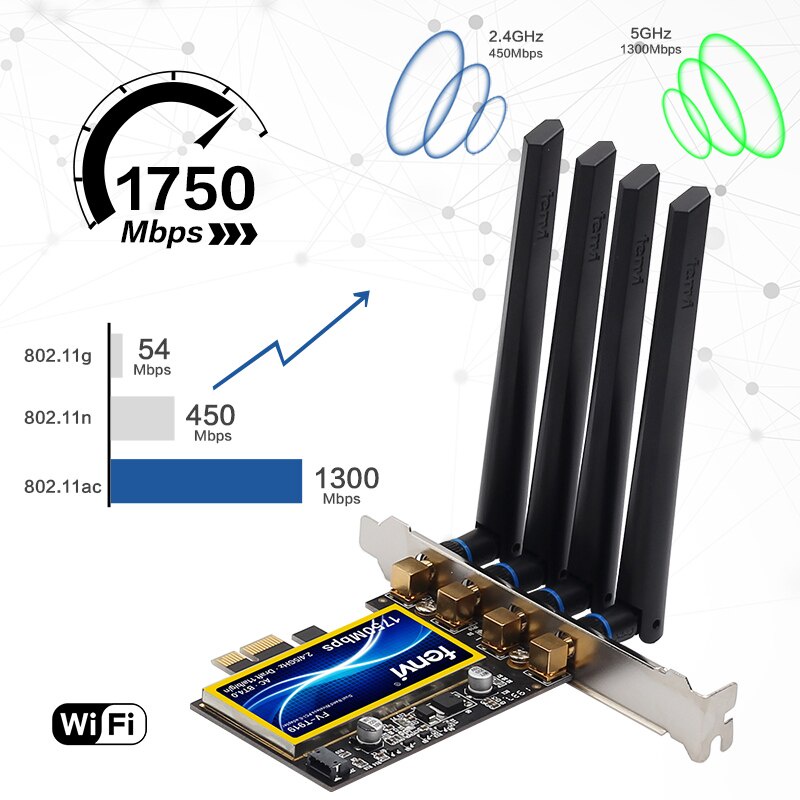 Tốc độ lên đến 1300Mbps trên 5Ghz, 450Mbps trên 2.4GHz