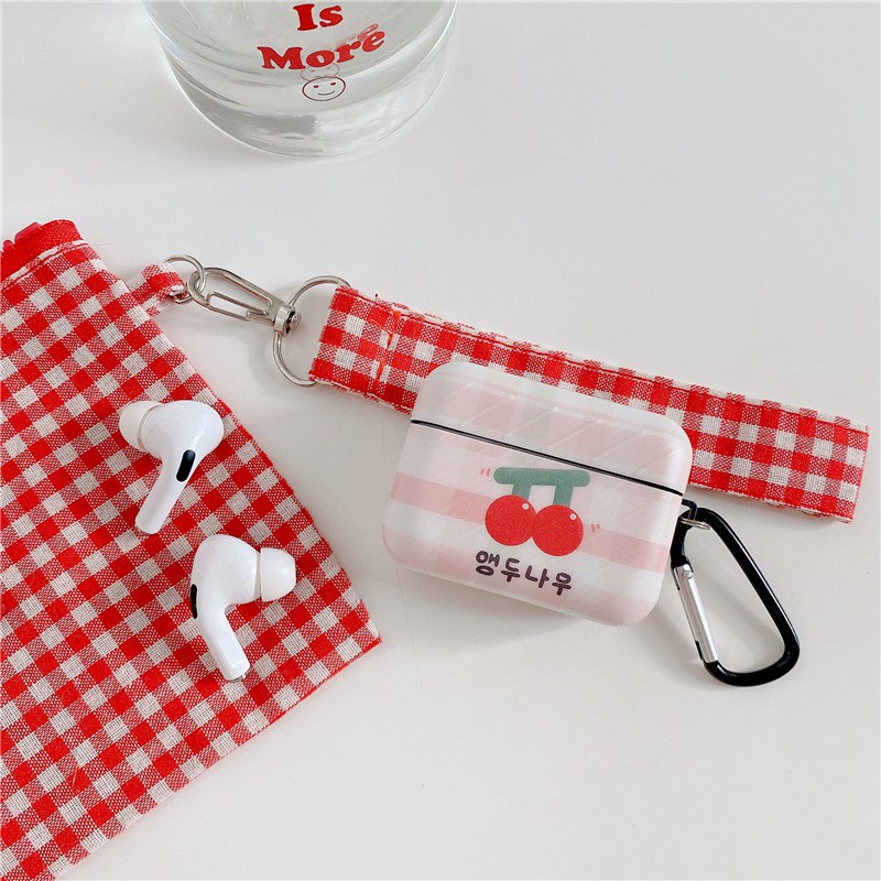 Case Airpods basic với họa tiết trái cherry đỏ trên nền hồng caro cực kì xì tin dành cho AirPods 1/2/Pro 😍