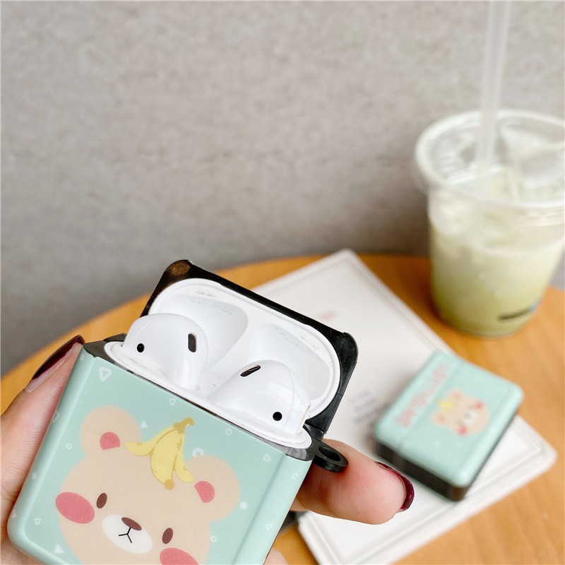 Case Airpods basic với thiết kế hình chú gấu đội vỏ chuối trên đầu cực cute dành cho AirPods 1/2/Pro 😍