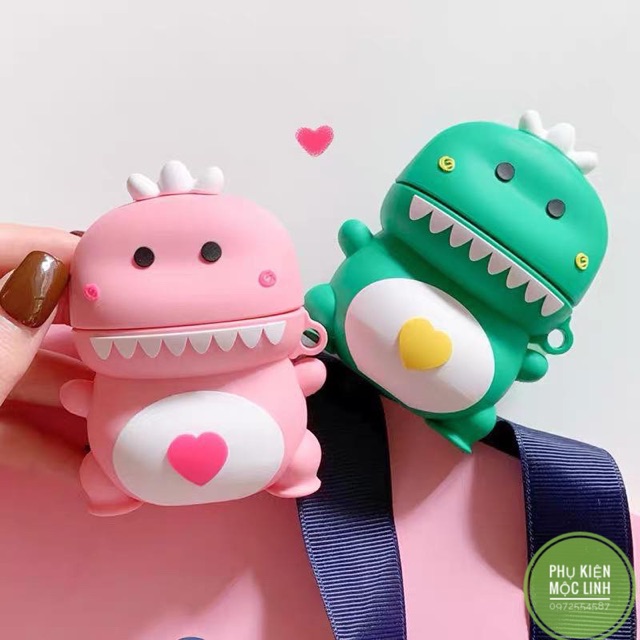 🦖Case airpods khủng long xanh hồng 🦖 Vỏ bao airpod 1 2 Pro silicon đựng tai nghe không dây i11 i12 i18 i100 ... Pro