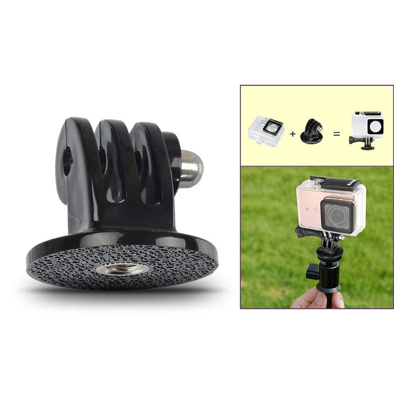 Trong bộ vỏ chống nước cho Xiaomi Yi 4k có sẵn đế mount gắn để gắn trên nón bảo hiểm, đầu xe...