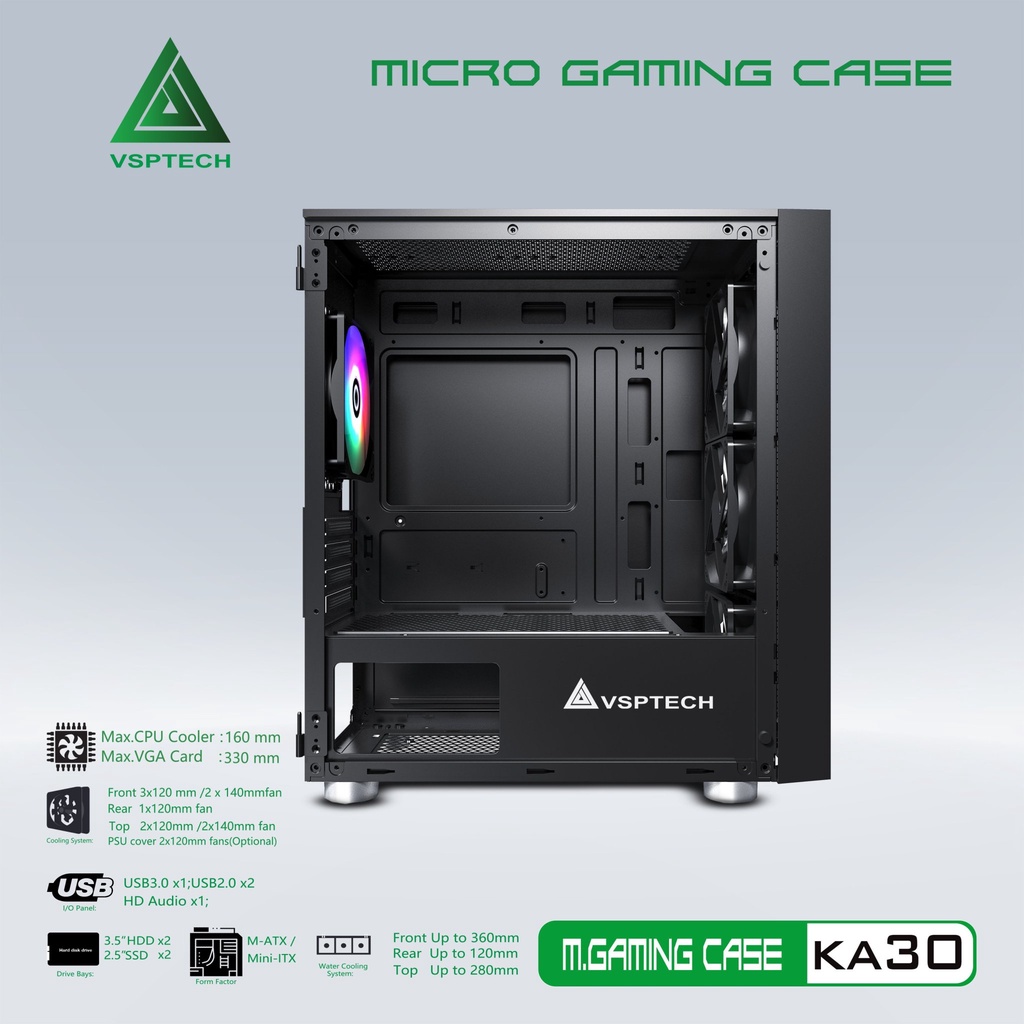 Máy tính & Laptop > Linh Kiện Máy Tính > Case Máy Tính || [Mã 273ELHA100K0 hoàn 7% đơn 500K] Case Gaming VSP HA01 Mini Tower (Màu Đen-Trắng-Hồng- Xanh)Còn hàng
