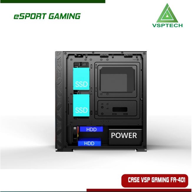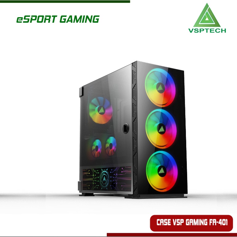 ✔️ Case VSP FA-401 Gaming Có Sẵn Fan LED RGB 14cm.♻️ Vỏ Case VSP FA-401 Được thiết kế cá tính, Mặt hông Phải Có sẵn tấm chắn Cover nguồn LED RGB, Case có Sẵn 4 Fan LED RGB (14cm) đi kèm sẻ giúp bạn tạo lên hiệu ứng ánh sáng tuyệt đẹp.