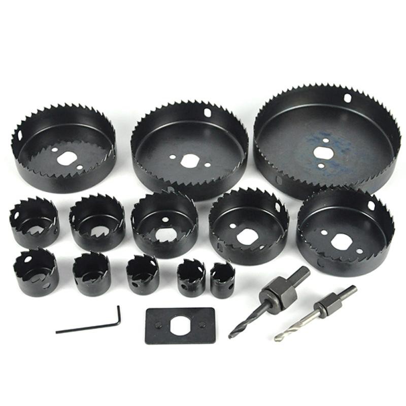 Bộ cắt gỗ hình tròn - Mui khoan khoet lo tron loại tốt, gồm 13 lưỡi khoét từ 19-127mmBộ dụng cụ khoét lỗ chuyên dụng cho bề mặt thạch cao, gỗ, nhôm alu