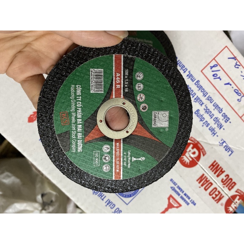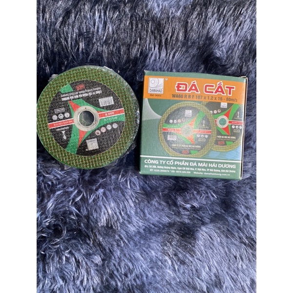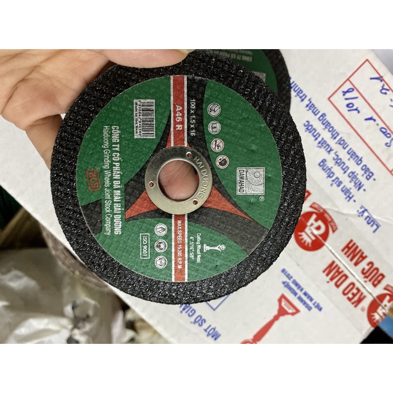 Đá cắt Hải Dương xanh 100mm (1 tấc) hàng chính hãngĐá cắt 100 là sản phẩm thông dụng được sử dụng rộng rãi trong xây dụng dân dụng, xây dựng công nghiệp, cơ khí, kết cấu, gia công đồ sắt, sản xuất đồ nội thất bằng kim loại...