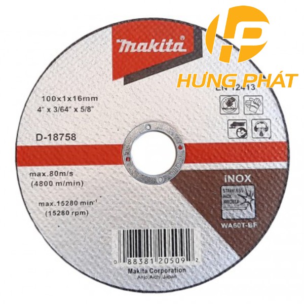 Đá cắt Inox Makita D-18758 (100mm x1mmx16)Sản phẩm chính hãng 100%