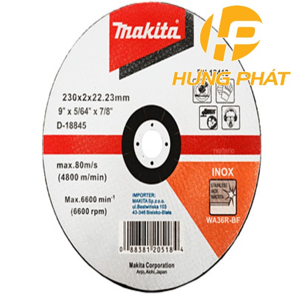 Đá cắt mỏng cho inox 230mm Makita D-18845 (230mmx2mmx22.2MM)Sản phẩm chính hãng 100%