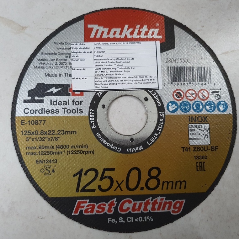Makita E-01855 | Đá cắt mỏng+ Dùng để cắt kim loại và thép không gỉ (inox)