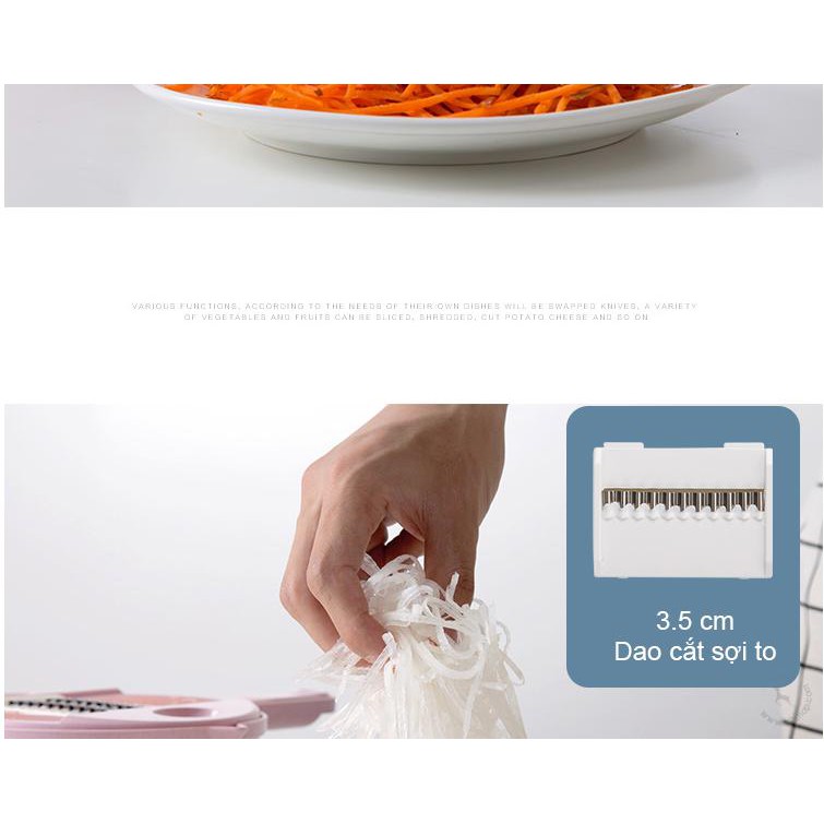 - Công dụng: Gọt vỏ, nạo sợi, bào nhỏ, thái lát, thái răng cưa… các loại rau củ phổ biến.