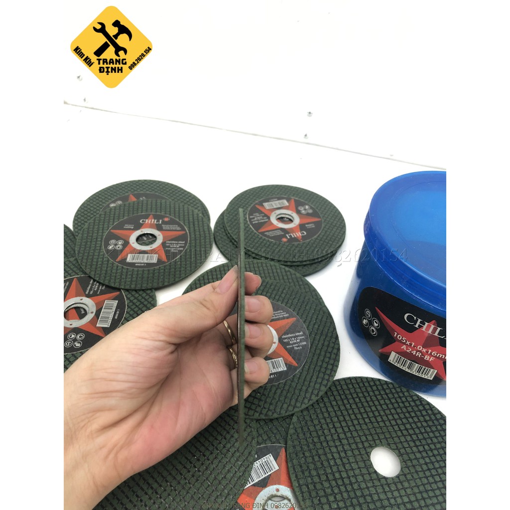 ĐẶC ĐIỂM NỔI BẬTĐá cắt sắt, cắt inox CHILI được thiết kế với chất liệu cao cấp nên sở hữu độ rắn chắc tuyệt đối, chịu nhiệt tốt, chịu lực tối ưu, chống biến dạng khi bị tác động mạnh giúp bạn yên tâm sử dụng sản phẩm trong một thời gian mà không lo các vấn đề hư hỏng như những chiếc đá cắt thông thường khác.