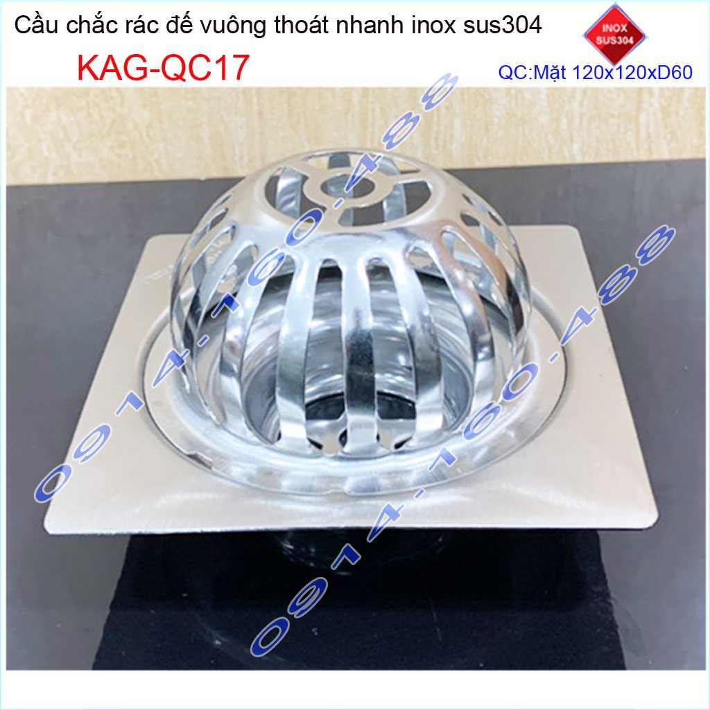 Cầu chắn rác đế vuông 12x12cm D60 KAG-QC17, Phễu thoát nước sân thượng SUS304 ống 6cm thoát nhanh chắn rác tốt