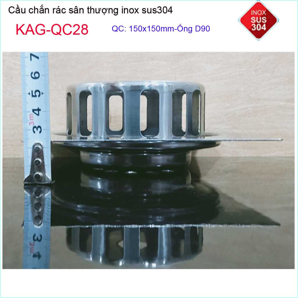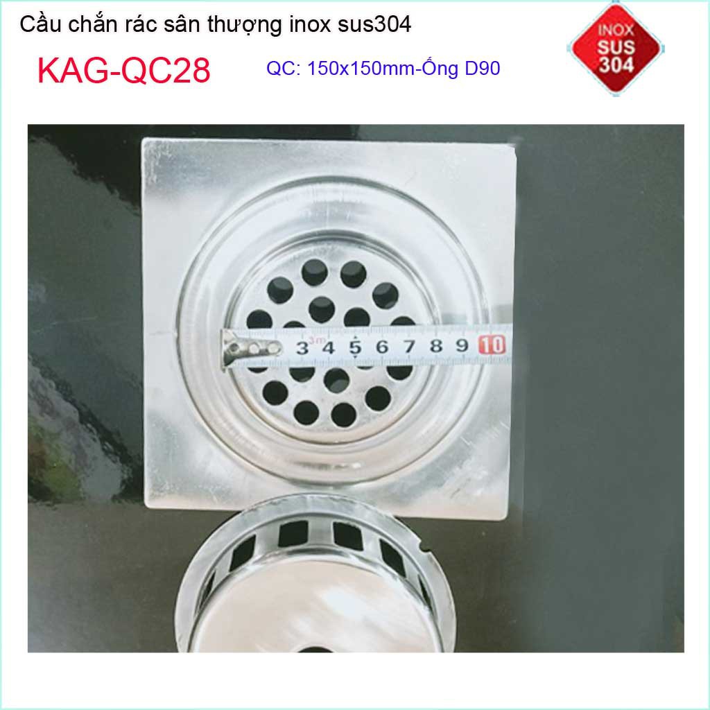 Cầu chắn rác đế vuông 15x15cm D90 KAG-QC28, thoát nước sân thượng SUS304 ống 9cm thoát nhanh chắn rác tốt