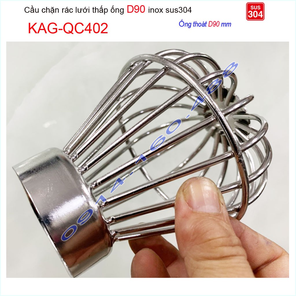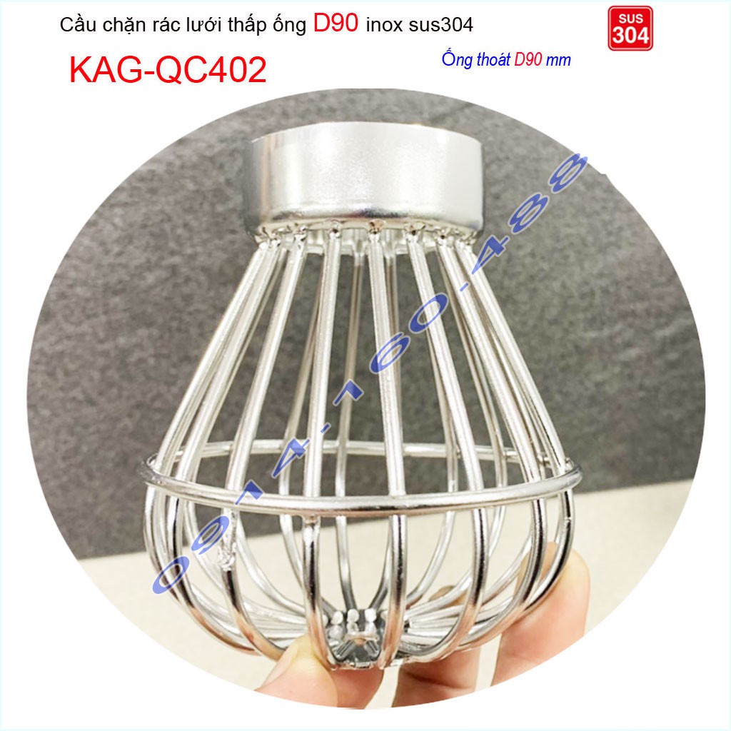 Cầu chắn rác lưới đế thấp KAG-QC402-ống D90, Cầu thoát nước mưa SUS304 inox dày cao cấp