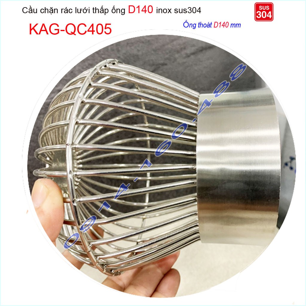Cầu chắn rác lưới đế thấp KAG-QC405 -ống D140, Cầu thoát nước mưa SUS304 inox dày cao cấp