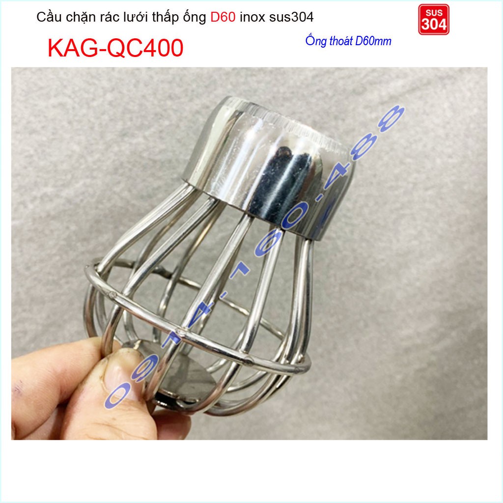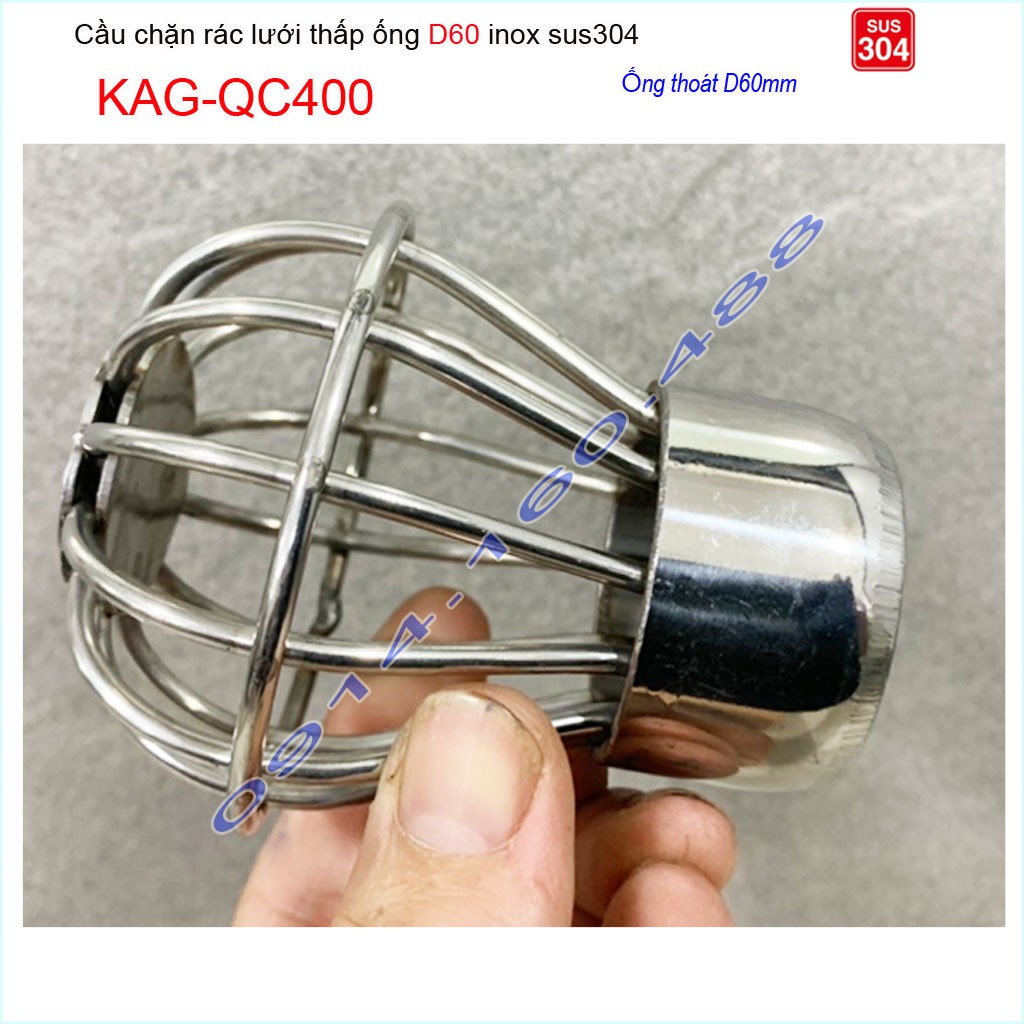 Cầu chắn rác lưới đế thấp KAG-QC400 -ống D60, Cầu thoát nước mưa SUS304 inox dày cao cấp