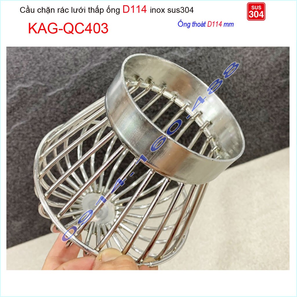 Cầu chắn rác lưới đế thấp KAG-QC403-ống D114, Cầu thoát nước mưa SUS304 inox dày cao cấp