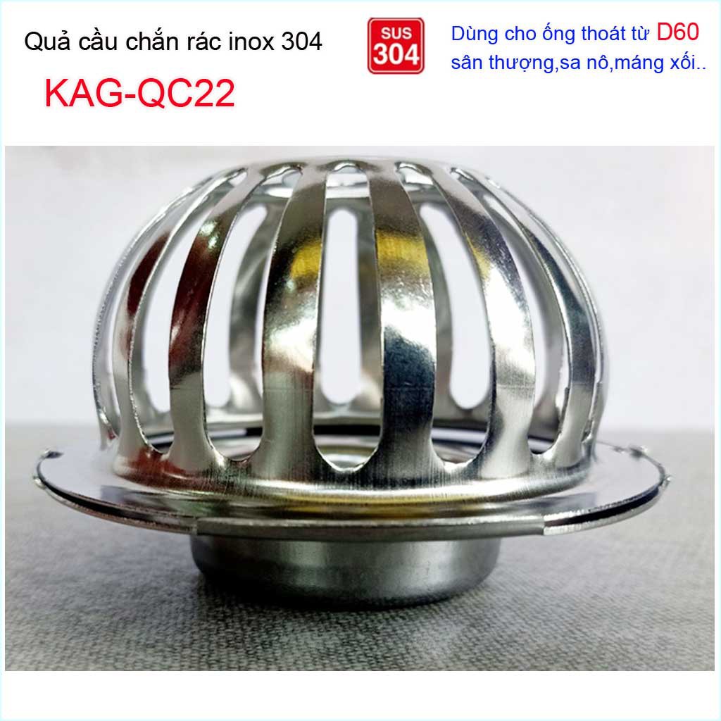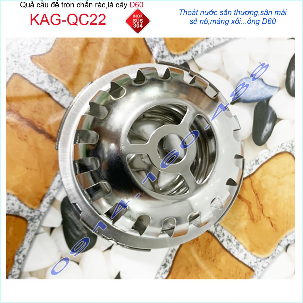 Giới thiệu Cầu chắn rác sân thượng D60 KAG-QC22 inox SUS304, cầu chặn rác đặt miệng ống D60 thoát nước mưa thoát nhanh