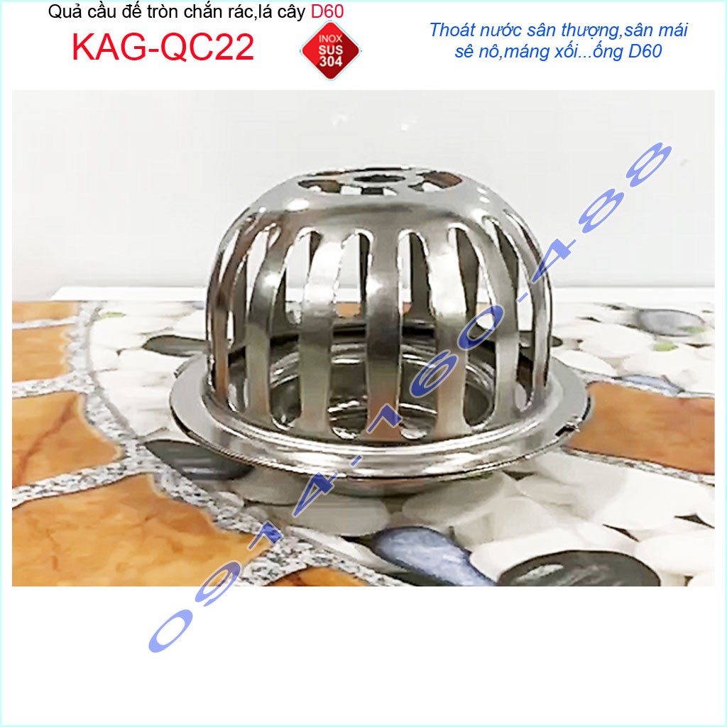 Nhà cửa & Đời sống > Đồ dùng phòng tắm > Khác || Cầu chắn rác sân thượng D60 KAG-QC22 inox SUS304, cầu chặn rác đặt miệng ống D60 thoát nước mưa thoát nhanhCòn hàng